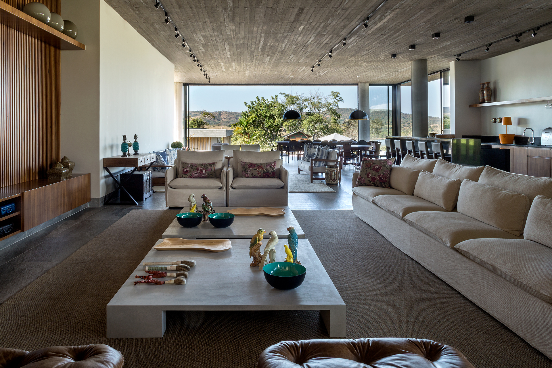 A Casa do Lago se revela como uma morada que abraça o entorno natural com leveza e imponência. Estruturada em concreto aparente, madeira bruta e grandes planos de vidro, a arquitetura privilegia a vista para o lago, criando uma relação fluida entre interior e exterior. As linhas retas e a cobertura em balanço acentuam a horizontalidade do projeto, que se acomoda suavemente sobre o terreno em declive.
